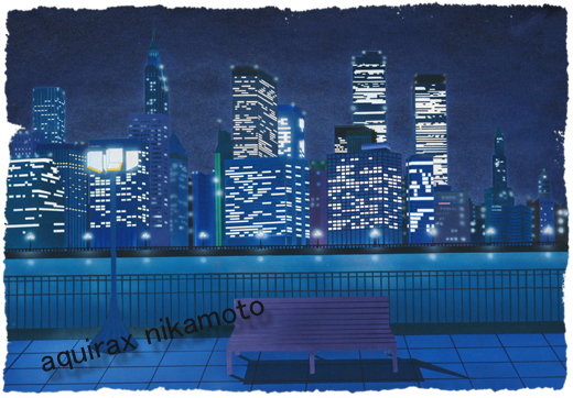 今はなき貿易センタービルがNYの夜景にまぎれてそびえています。